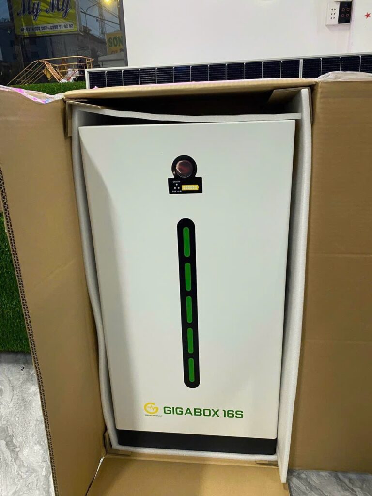 - Pin lưu trữ LifePo4 15.6Kwh GIGABOX 16S, bảo hành chính hãng 5 năm.