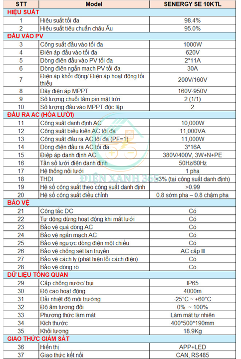 THÔNG SỐ KĨ THUẬT CỦA INVERTER hòa lưới 3 pha 10KW SE 10KTL