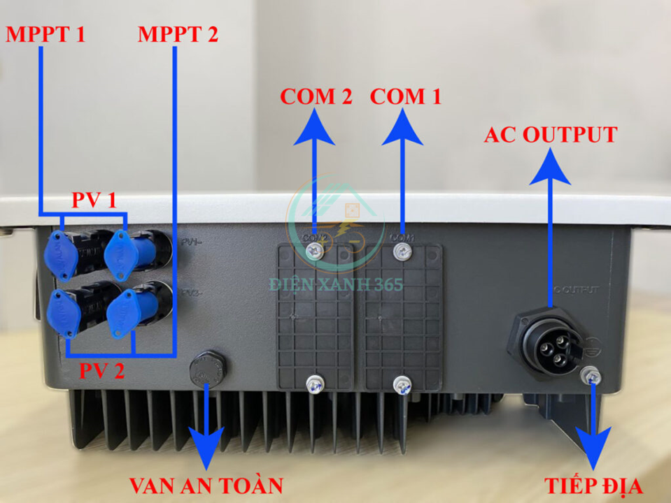 - 2 mppt, thích hợp với 2 string tấm pin năng lượng mặt trời hoặc lắp pin trên 2 hướng mái nhà.