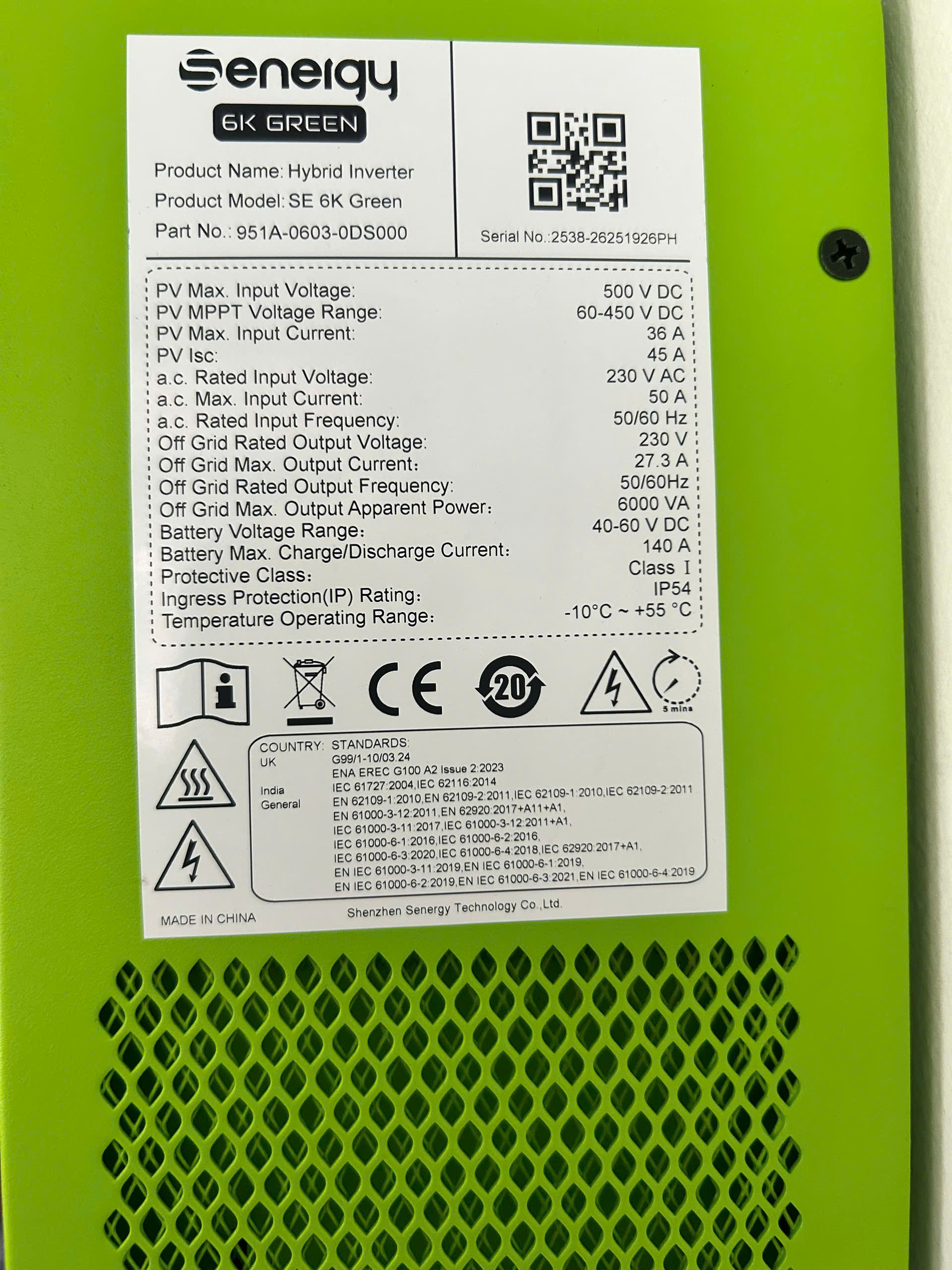 THÔNG SỐ KĨ THUẬT INVERTER HYBRID SENERGY 6KW GREEN